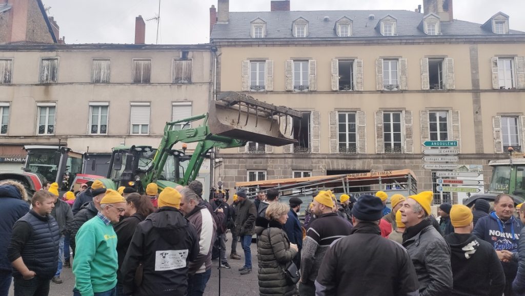 La coordination rurale de Haute-Vienne est arrivée aux alentours de 11h devant la préfecture de Limoges hier matin. Une trentaine de tracteurs chargés de fumier, de branchages, de paille et de détritus en tout genre, dont des pneus, se sont arrêtés avenue de la libération. Une soixantaine d’éleveurs en sont descendus. Le syndicat agricole veut faire entendre son opposition à la gestion de la dermatose nodulaire par le gouvernement. Ils sont contre l’abattage systématique de l’entièreté du troupeau quand un seul animal est concerné. Thomas Hégarty, le président départemental, et quatre autres représentants ont été reçus par le préfet. Pour la coordination rurale, la vaccination est la clé. Thomas Hégarty réclame même la démission d’Annie Genevard, la ministre de l’agriculture. Lucie Alix s’est rendue sur place pour Kaolin. Elle a pu interviewé Thomas Hégarty et Christophe Fusage, éleveur bovin à Saint-Yrieix-la-Perche.
